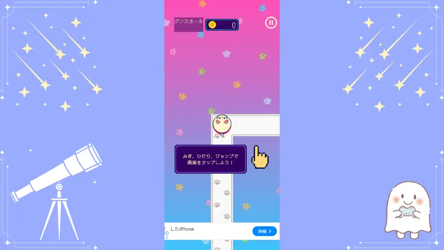 右、左、ジャンプという3つの操作でカジュアルに遊ぶことができます。