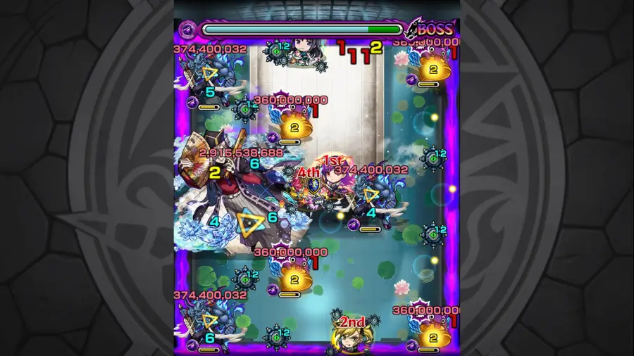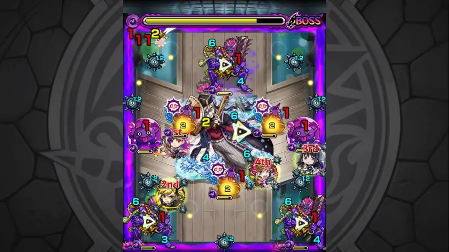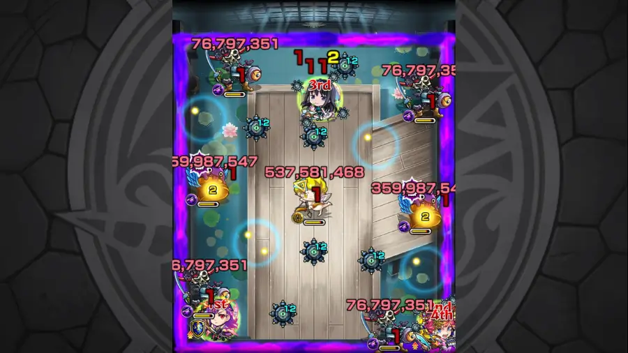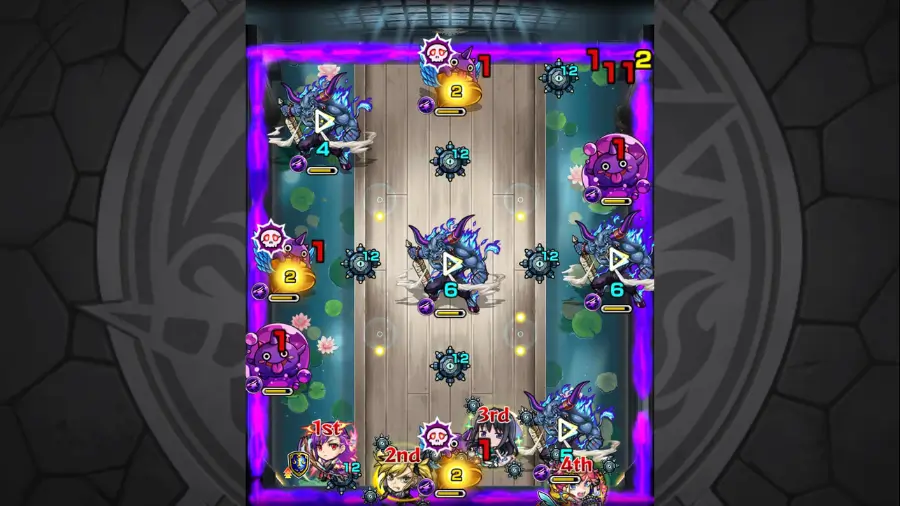 朱天童子の右下の数字が蘇生になります。V字のようなルートではじくと処理しやすいです。