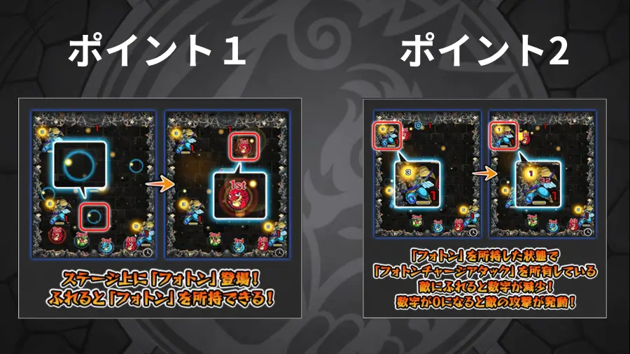 フォトンを2つ拾って、はやリンを倒します。フォトンが多いステージになりますが、仮にフォトンを3つ拾ってはやリンを倒しても問題はないです。