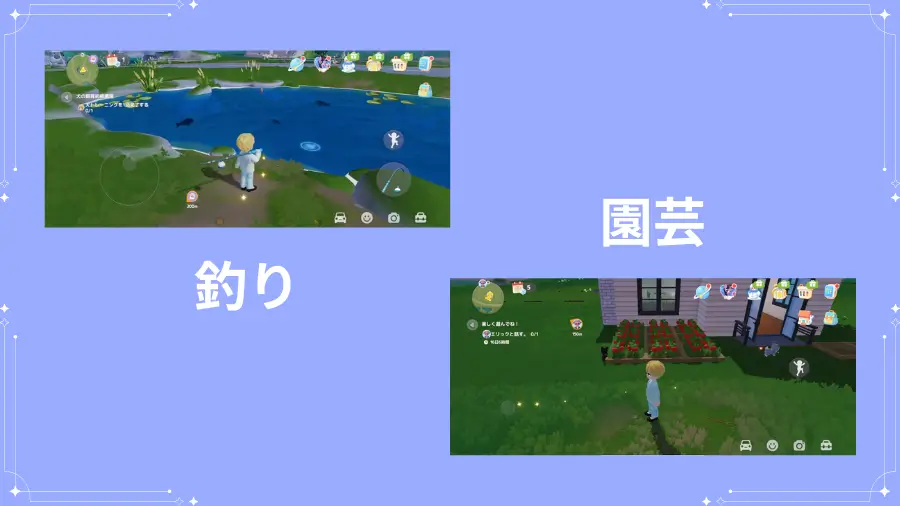 釣りや園芸、料理、建築など、スローライフならではの活動が楽しめます。