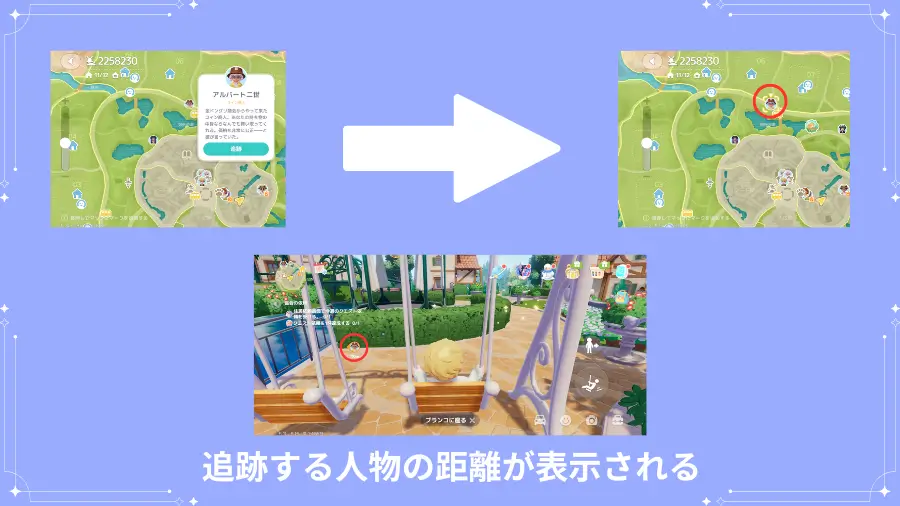 住民を探す場合はマップを利用しましょう。住民をタップすると、詳細と共に追跡もできます。