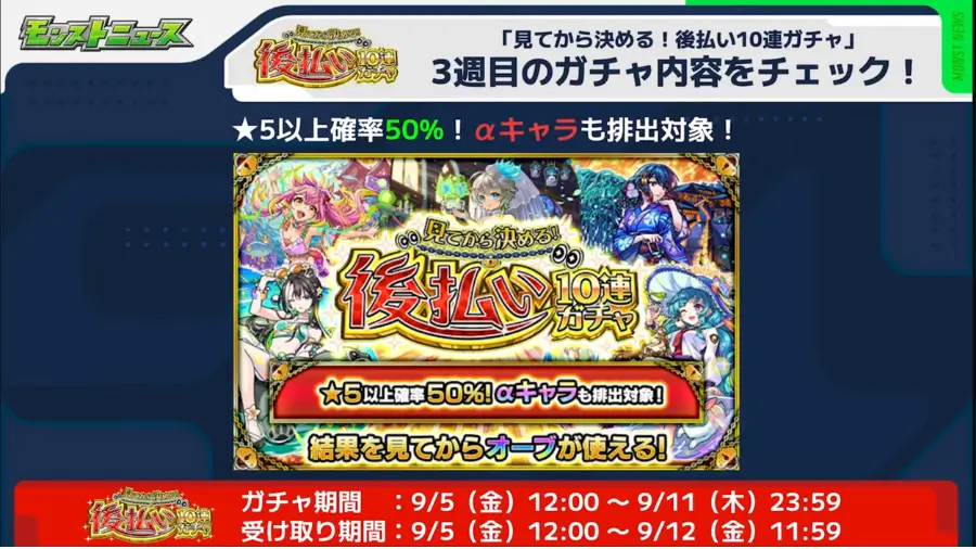 - ガチャ期間 :9月5日(金)12:00~9月11日(木)23:59