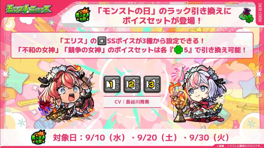 これに伴い、「モンストの日」のラック引き換えにボイスセットが登場します。