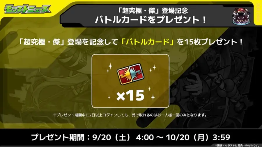 超究極・傑の登場記念でバトルカードが15枚配布されます。