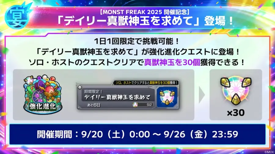 1日1回限定で挑戦可能です。クエストクリアで真獣神玉を30個獲得できます。