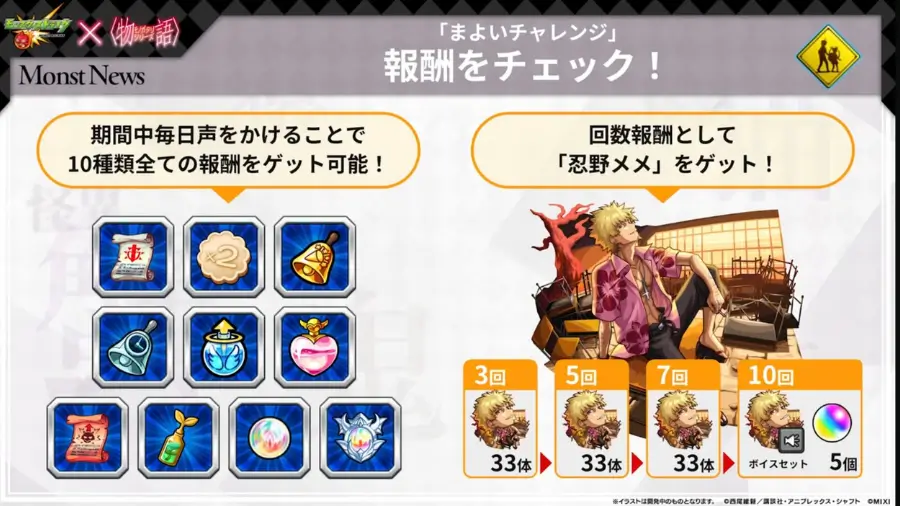 - 2つのミッションをクリア→「忍野しのぶ」のボイスセット