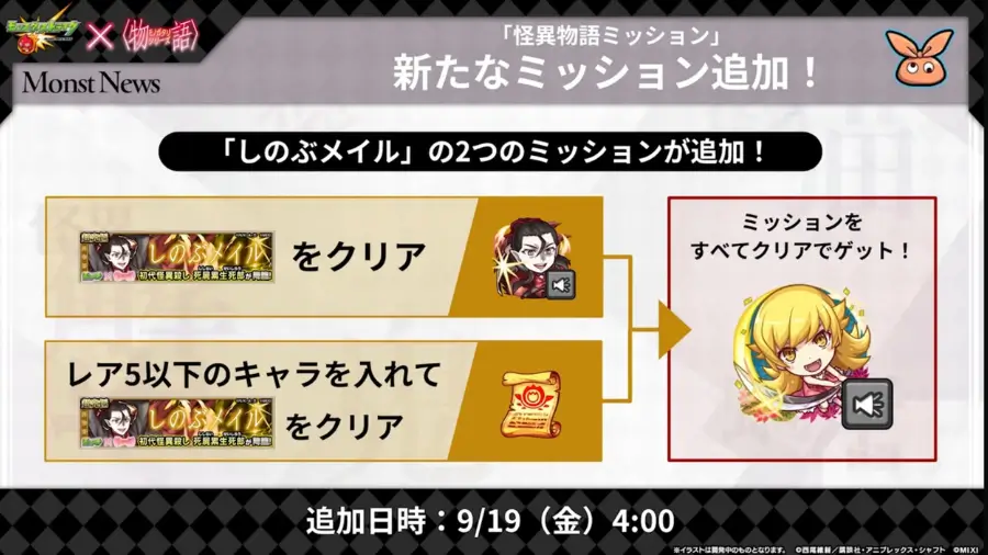 「怪異物語ミッション」に新たなミッションが2つ追加されます。