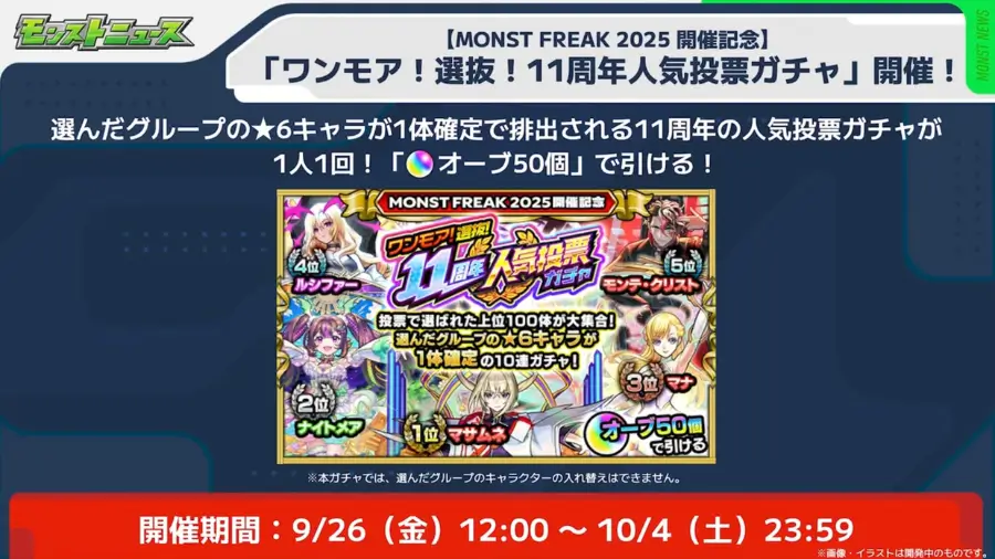 「ワンモア!選抜!11周年人気投票ガチャ」開催