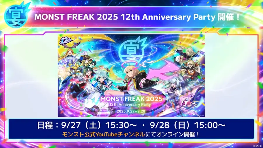 モンストの12周年を記念したパーティーの開催時間が決定しました。