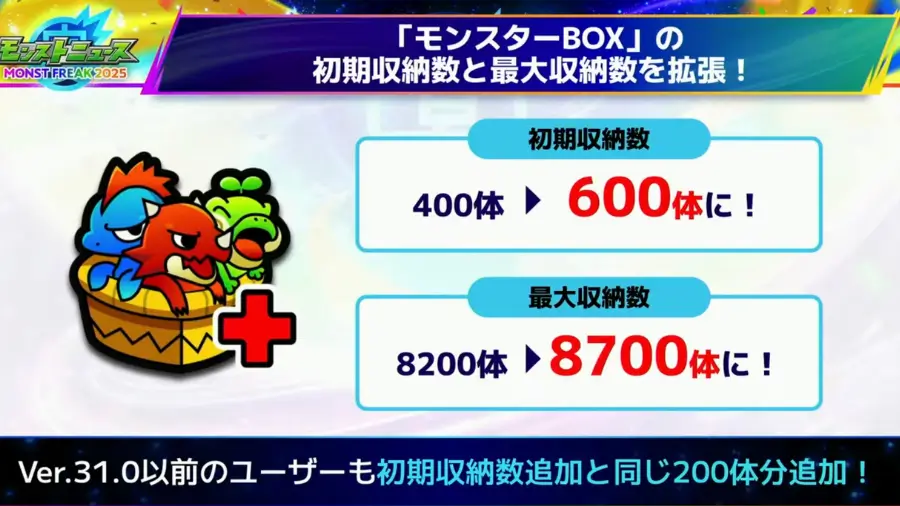 「モンスターボックス」の初期収納数と最大収納数の増加