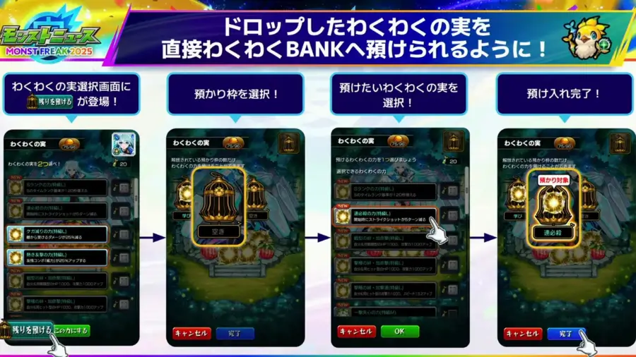 わくわくの実を選択画面で「残りを預ける」ボタンが登場します。