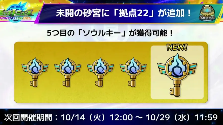 未開の砂拠点22をクリアすると5つ目の「ソウルキー」が獲得できます。