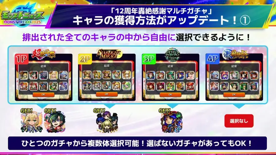 1つのガチャ結果から複数選べるので、1体も選択しないガチャ結果があっても