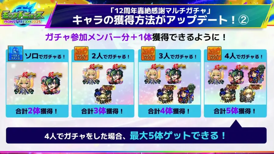 アップデート2:ガチャ参加メンバー+1体獲得できる