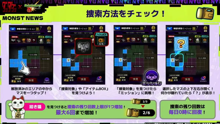 毎日0時捜索可能エリアの解放捜索回数が回復します。