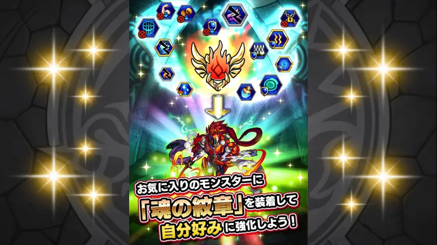 魂の紋章はキャラに装着することで、キャラを強化することができます。