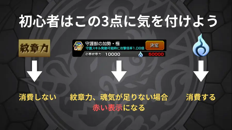• 魂気と紋章力のどちらかが不足しているとソウルスキルは使えない