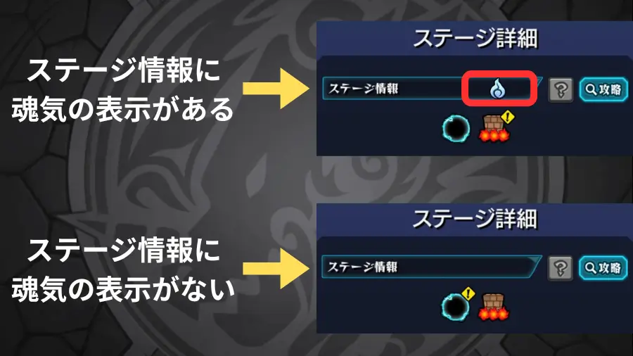 魂気はステージ詳細に魂気マークが表示されているクエストをクリアすると獲得できます。