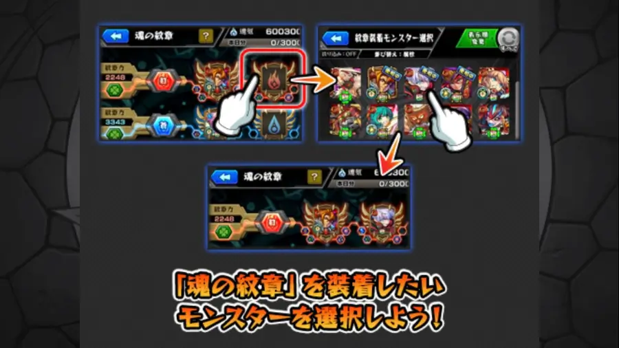 魂の紋章は装着することでキャラの能力を強化することができます。