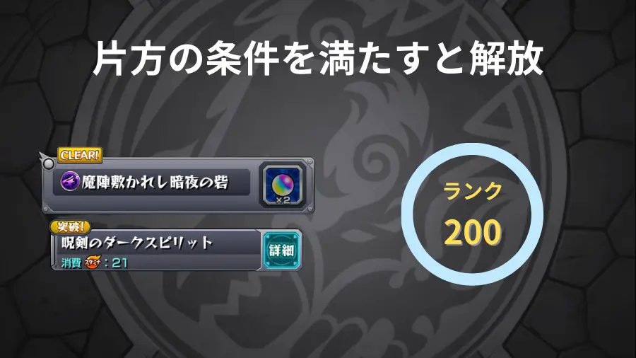 解放条件は2つあります。どちらか片方を満たすと解放となります。