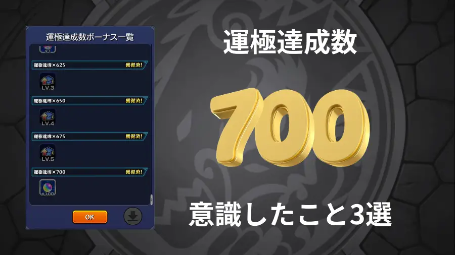 運極を700体作成することにより、運極達成ボーナスをすべて獲得することができます。