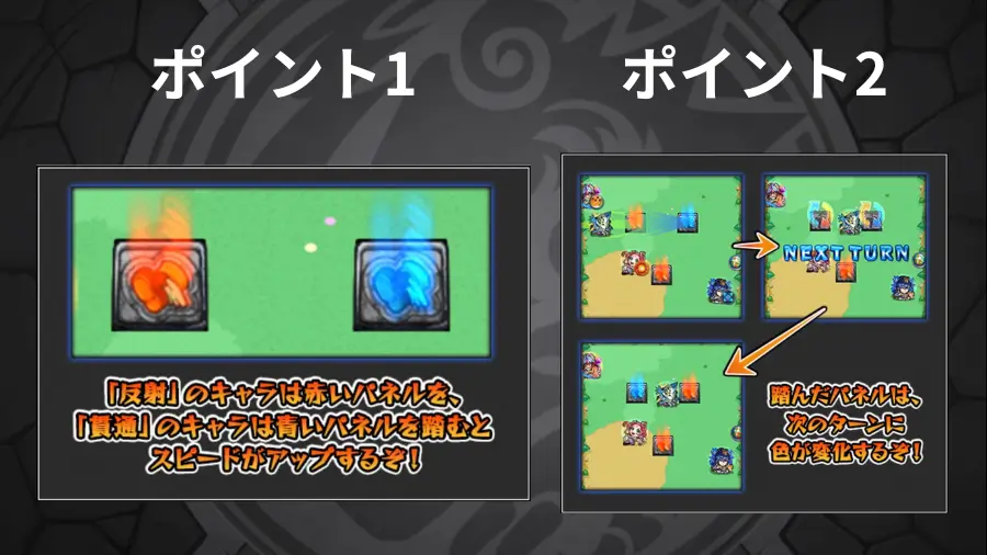 - 加速パネルを次のターンのキャラに向けて調整すること
