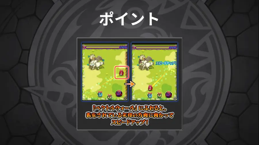 敵に触れると攻撃力が上がるので敵に触れてから、ベクトルウォールを利用します。