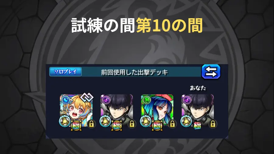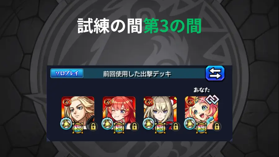 | 第3位 試練の間第3の間 | HP管理 攻撃力アップと回復 ゾンビの同時処理とボス削り |