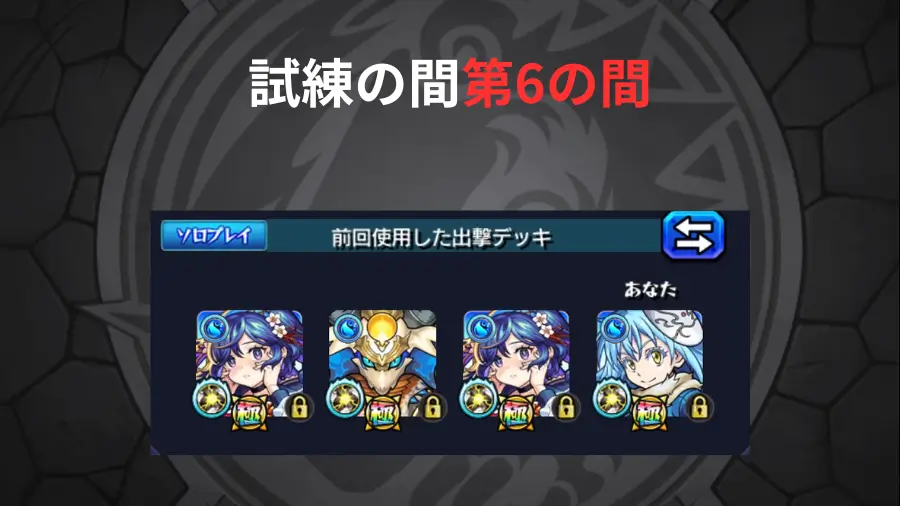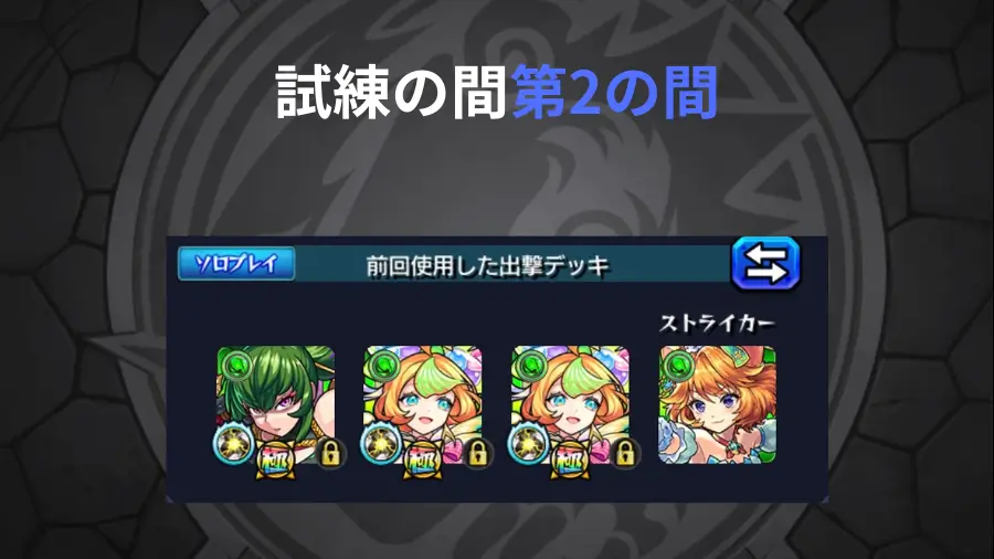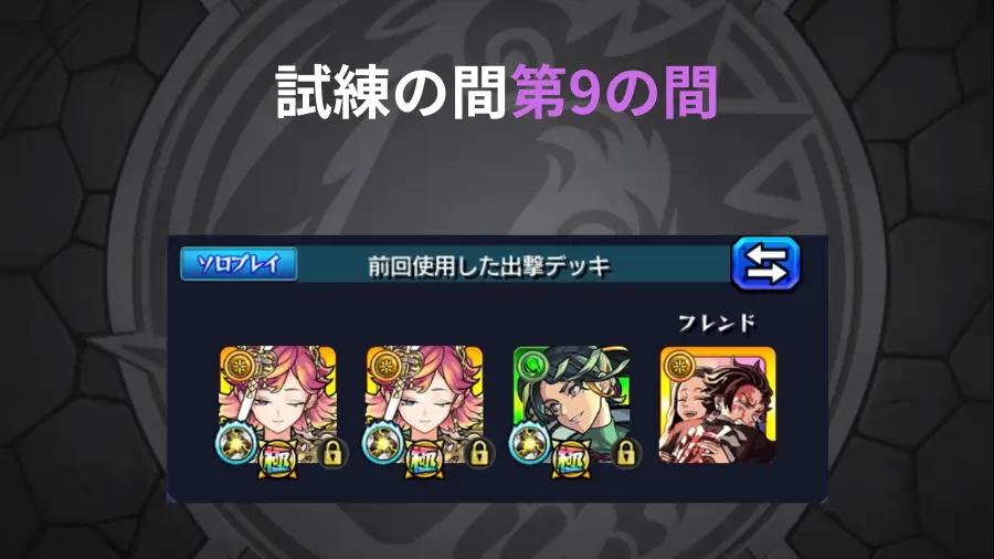 | 第1位 試練の間第2の間 | HP管理 多用な雑魚処理 ボス削りのルート取り |