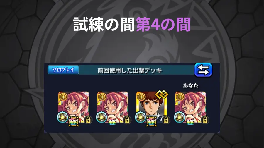 試練の間4は透過パネルが沢山でてきます。雑魚処理もボス削りも透過パネルにより左右されます。
