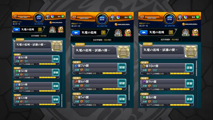 「試練の間」は過去に何度か制覇してきましたが、「両方制覇」を達成したかったため制覇してきました。「両方制覇」も初となります。