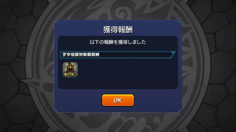 「空中庭園」を初クリアしたので、わくわくバンクも拡張することができました。