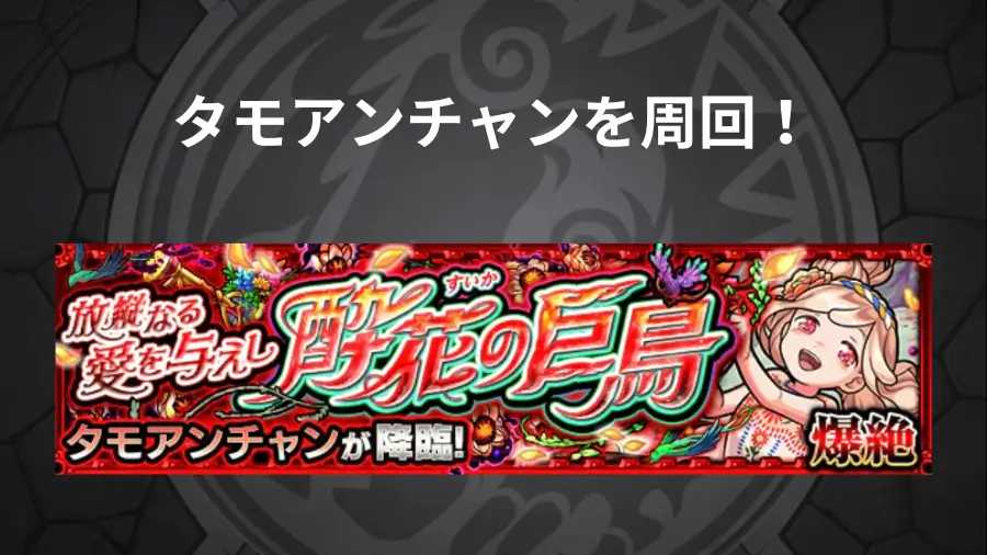火属性のタモアンチャンを周回しました。運極を作成しつつ周回していたので、1枠目は運極のキャラを採用しています。