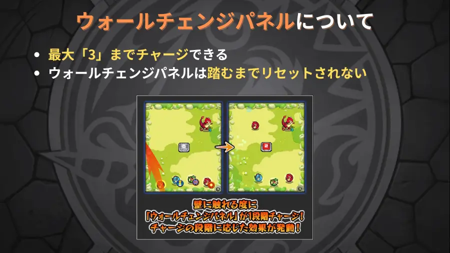 タモアンチャンではウォールチェンジパネルが出現します。ウォールチェンジパネルについては以下のようになっています。
