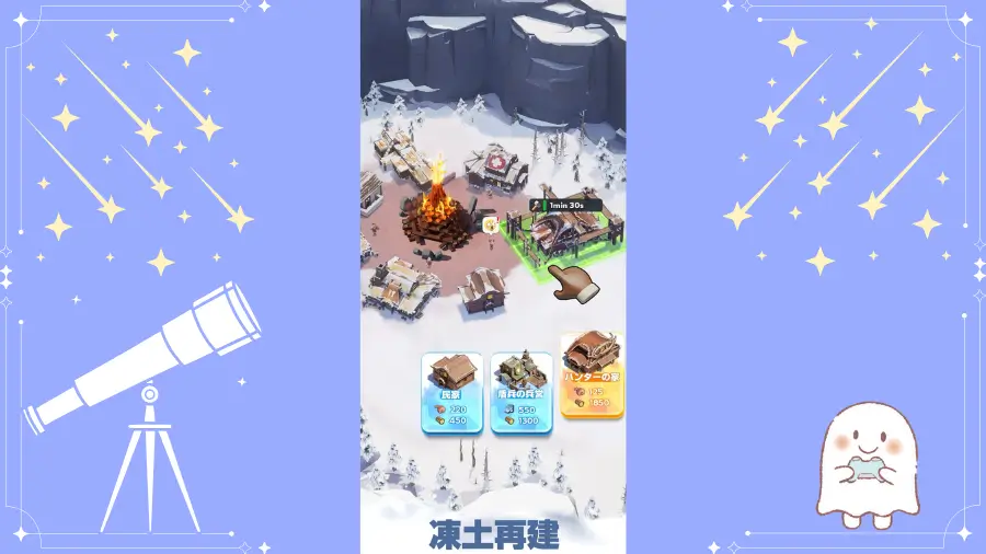 生きていくうえで必要な施設を作って、人が寒さに怯えることなく住めるように開拓していくよ!